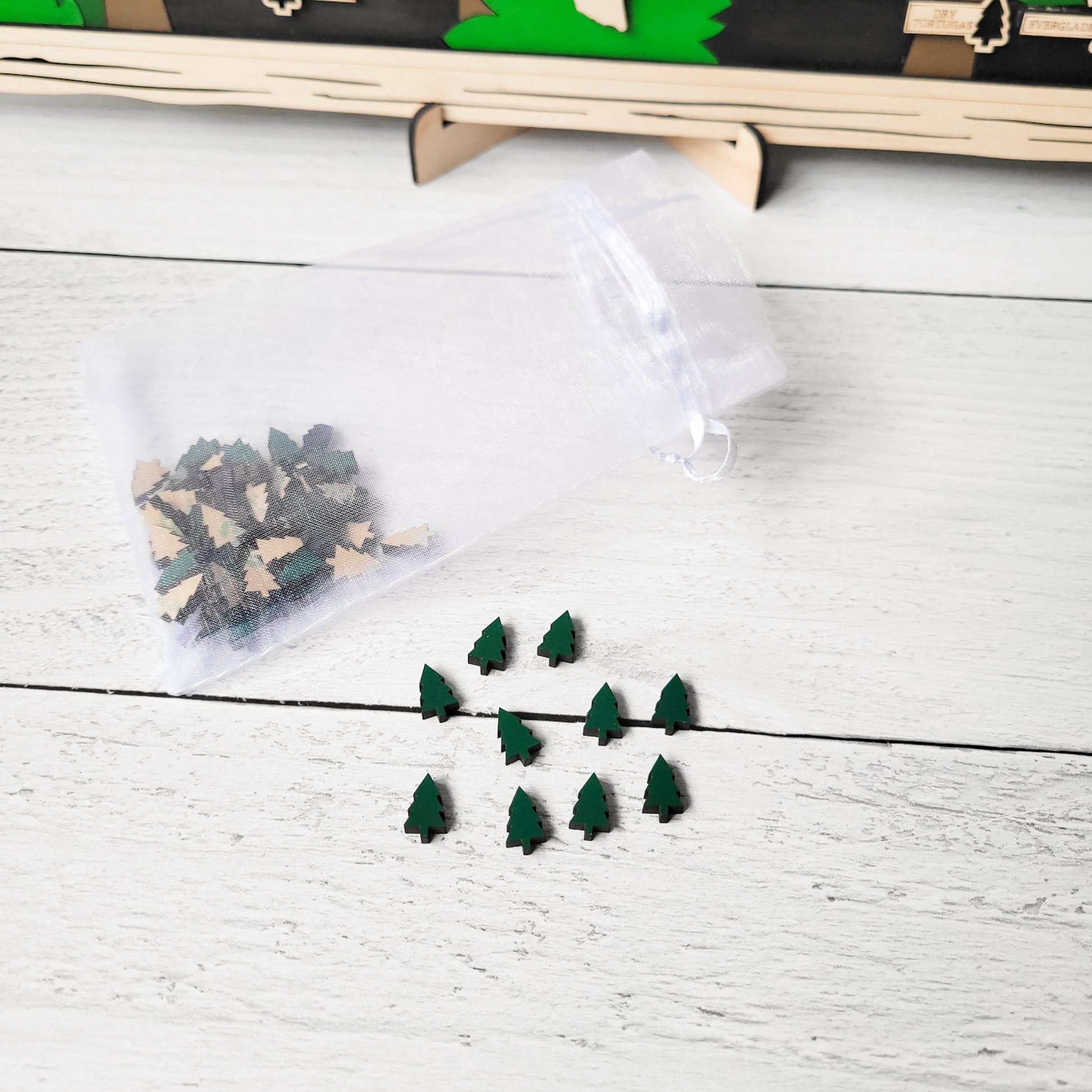 Discover adventure with this handpainted "Forest" US National Parks Tracker Map, sized just right at 18x11 inches. Each map is carefully assembled and crafted by hand, making it a unique treasure. Please allow 7-14 business days for your map to be lovingly painted and prepared—perfect timing to dream up your next national park getaway!